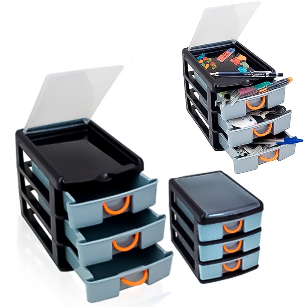Caixa Organizadora Com 3 Gavetas Puxador Gaveteiro Multiuso Casa Papelaria Estoque 25479 7080 TOY