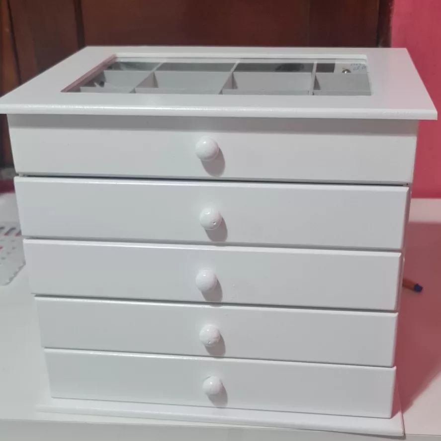 CAIXA Organizadora Gaveteiro Porta Bijuterias 5 Gavetas BRANCO COM PUXADOR Paru 51679