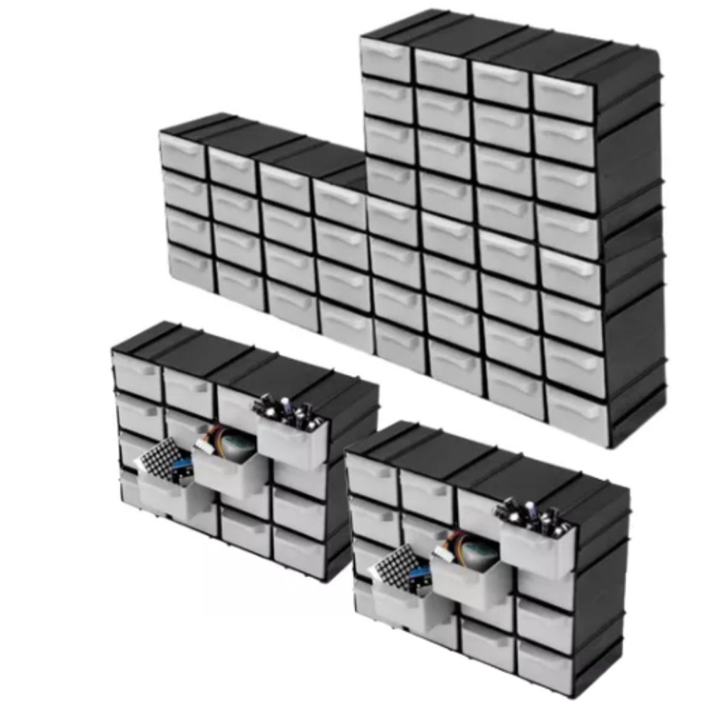 Kit 5 Caixa Organizadora Gaveteiro Empilhavel Para Ferramenta Parafuso Brocas Pesca Costura Com 80 Gavetas