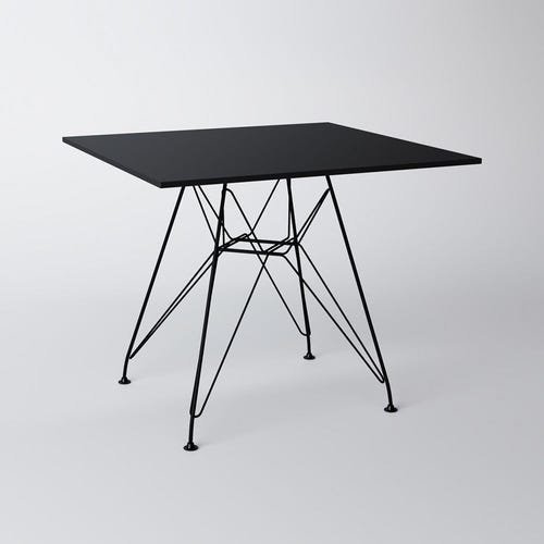 Mesa Eiffel Quadrada 90cm Tampo de Madeira Preto com Base de Ferro Preto