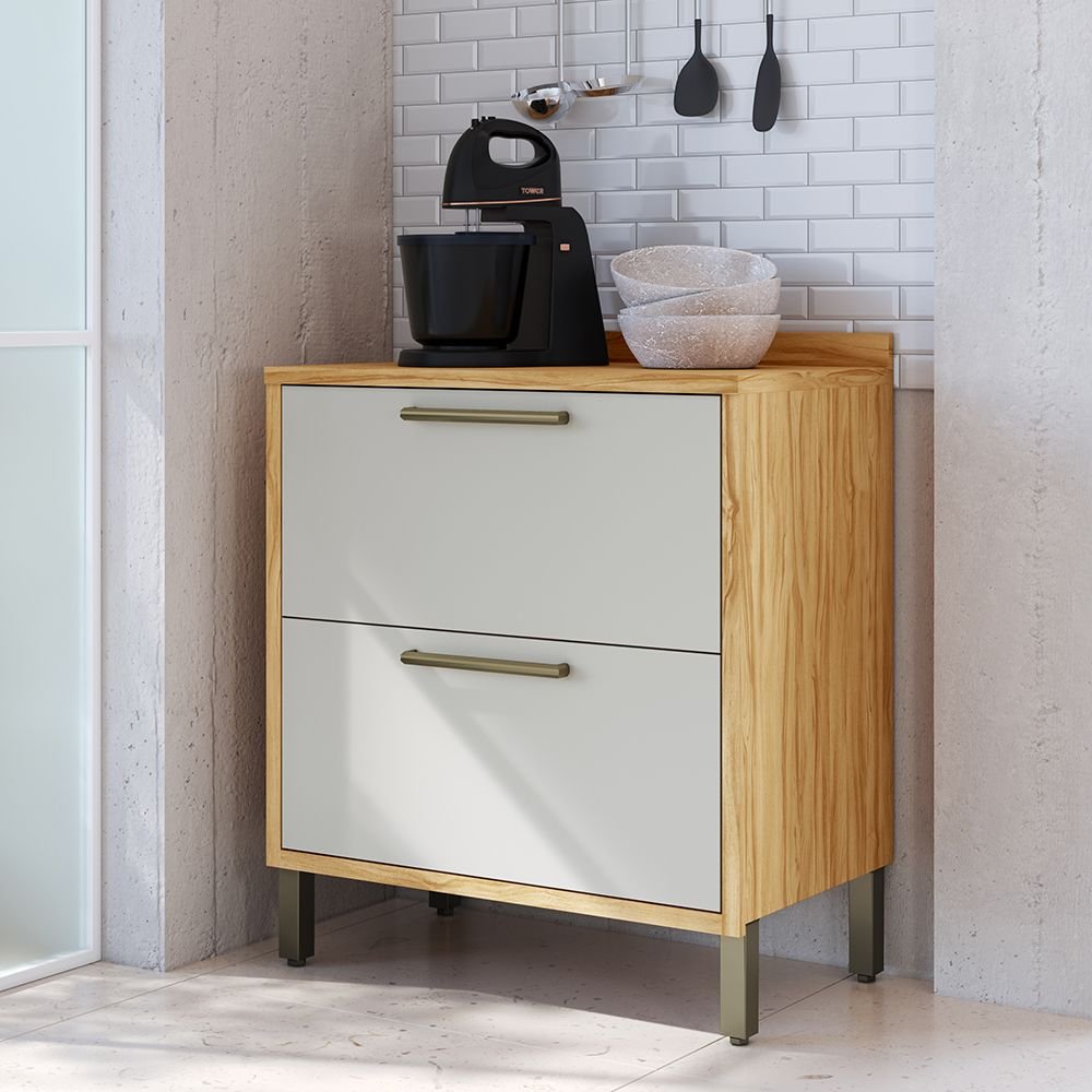 Balcão Canto Reto para Cozinha 1 Porta Emily Espresso Móveis Cinza