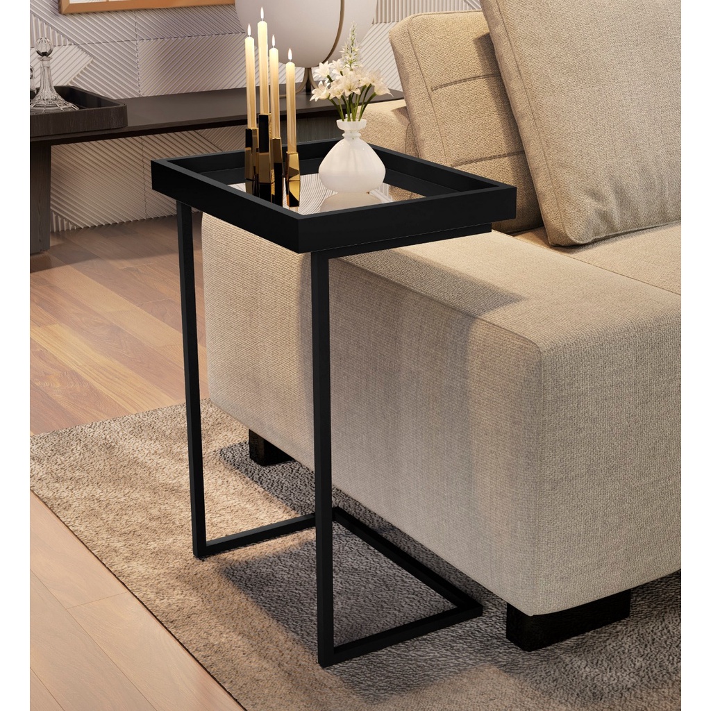 Mesa De Canto Apoio Para Sofá Cama Bandeja Espelhada