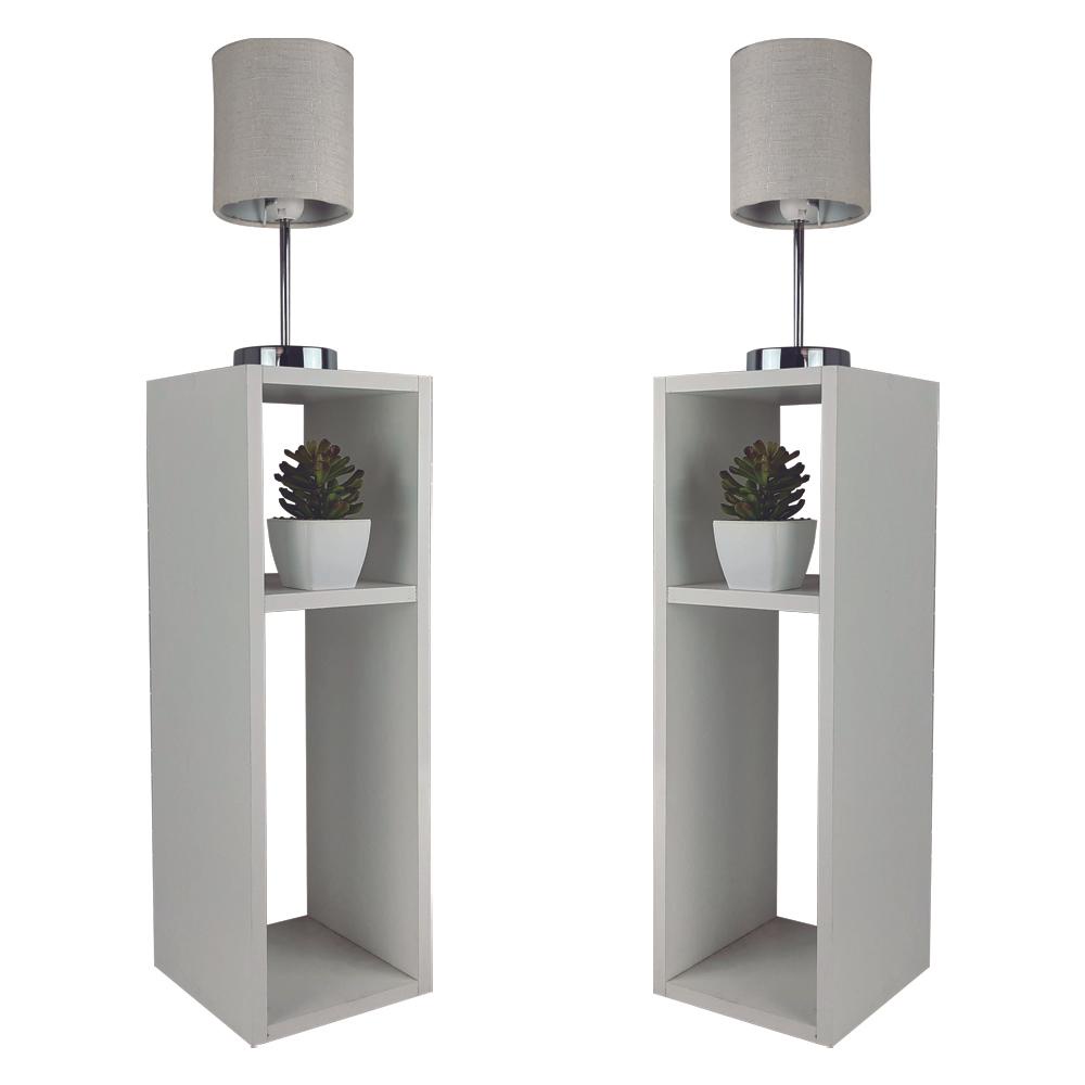 Kit 2 Mesa de Cabeceira Branco Cama Solteiro Quarto Sala 20cm