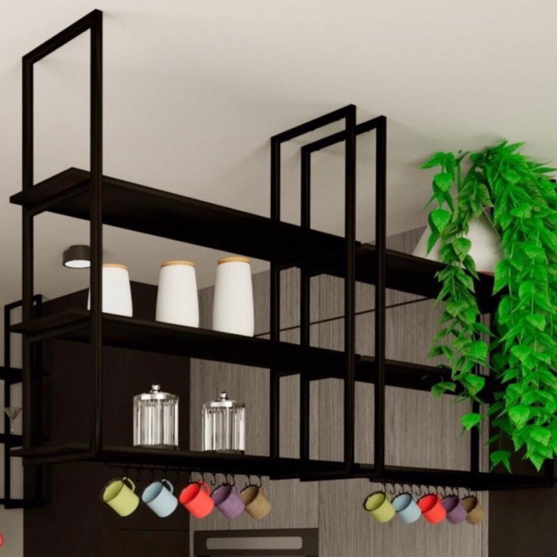Prateleira Estilo Industrial Suspensa Teto Cozinha 60cm p.m