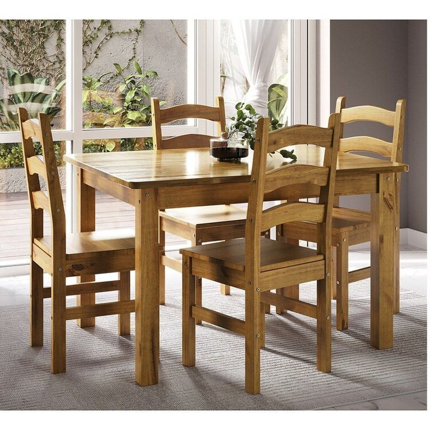Conjunto com Mesa de Jantar Retangular 4 Cadeiras Estofadas em Madeira Maciça Serena Espresso Móveis Nogueira / Angus Ambar - Marrom