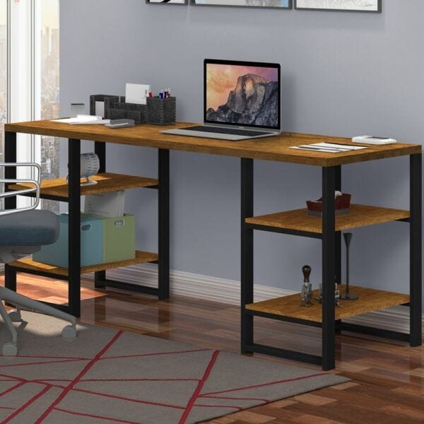 Mesa de Computador Industrial 4 Prateleiras Aço Preto Canela Rústico Innovare Art Panta