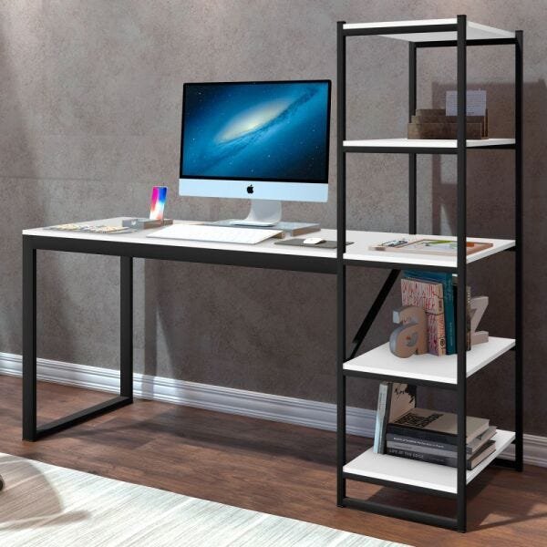 Mesa Escrivaninha Artemis 4 Prateleiras Preto/Branco - Art Panta