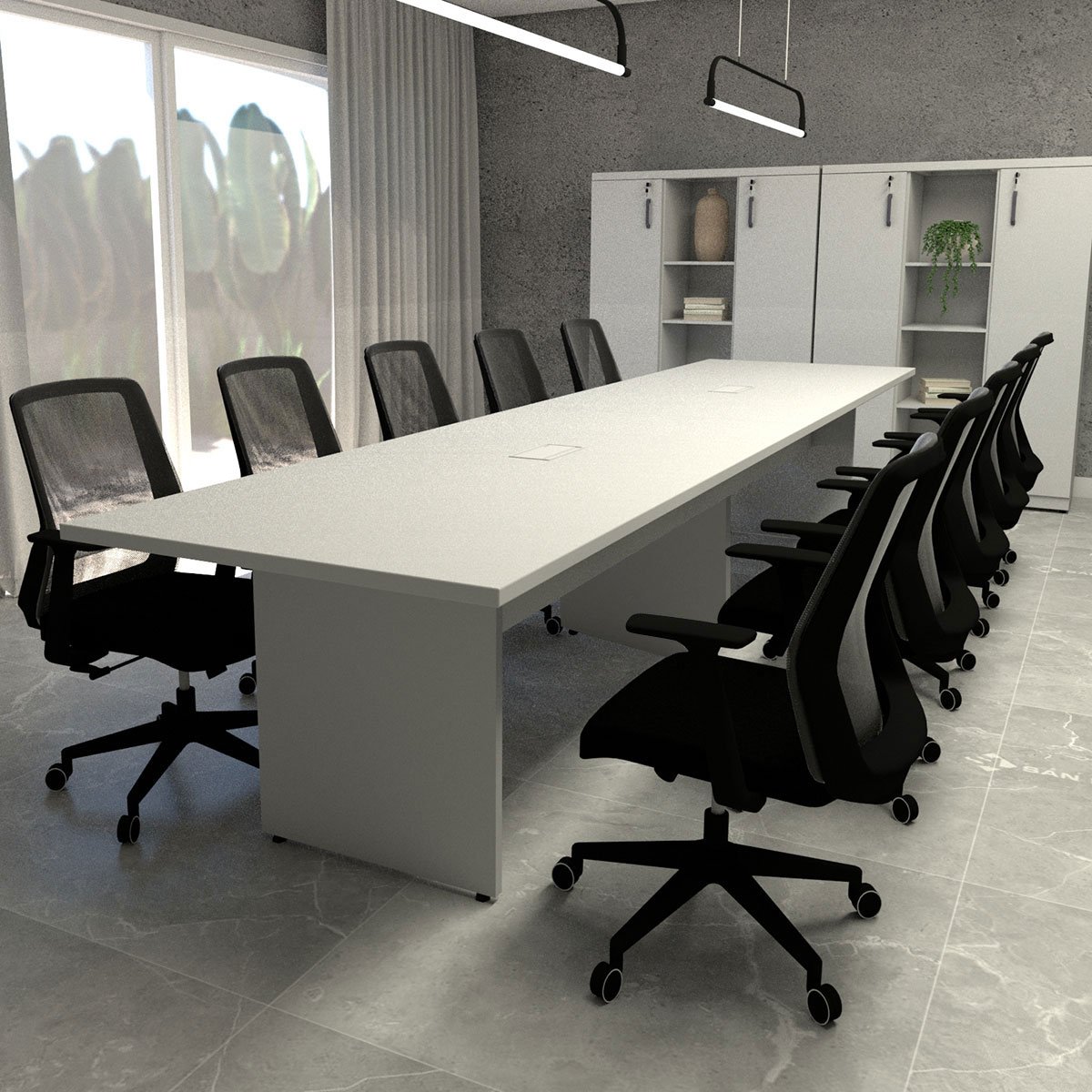 Mesa de Reunião Cinza 3,20m X 1,10m 2 Caixas de Tomadas F5
