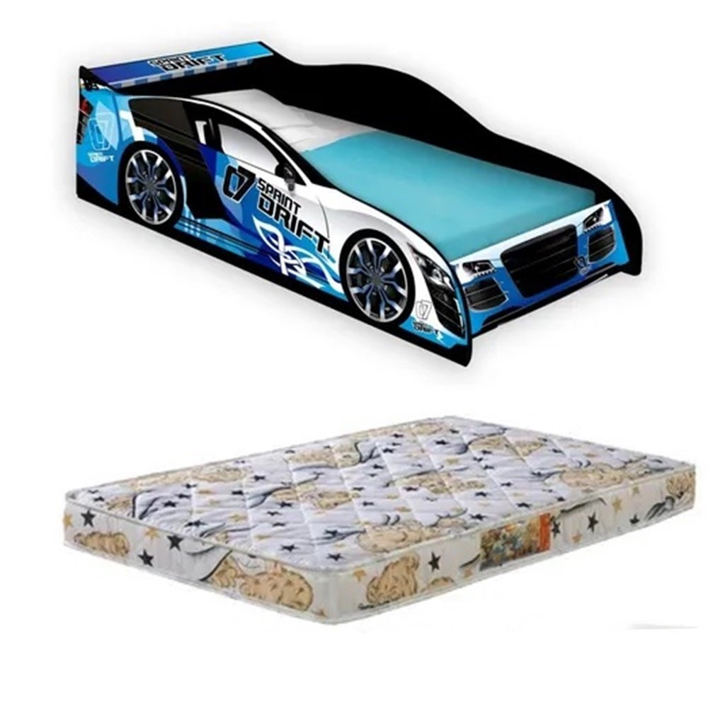Cama Carro Infantil + Colchão Drifit Azul 100% MDF J&A Móveis