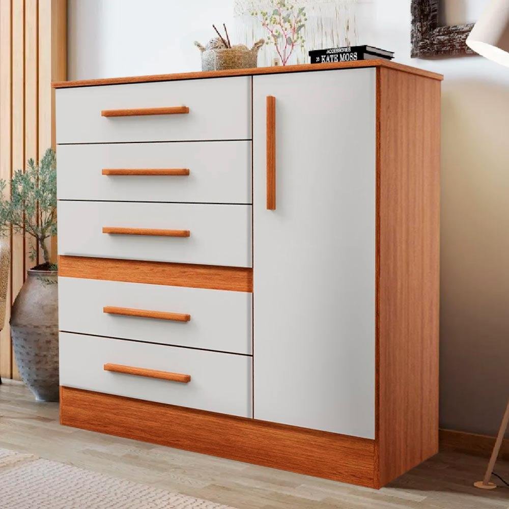Cômoda 5 Gavetas 1 Porta Nature Off White Londres Fênix