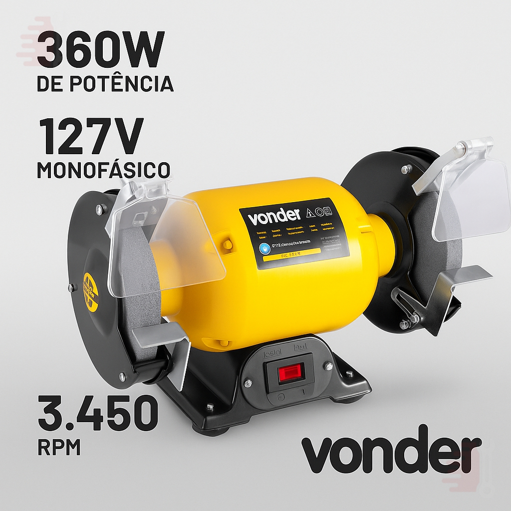 Moto Esmeril de Bancada Vonder 6" 127V 360W com 2 Rebolos Lixadeira Profissional Desbaste