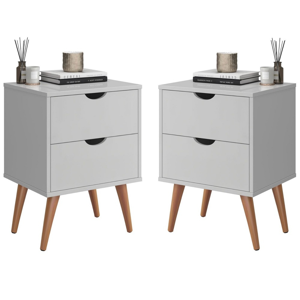 Kit Mesa Cabeceira Madri Pés Palito Retro 2 Gavetas 2 Unid.