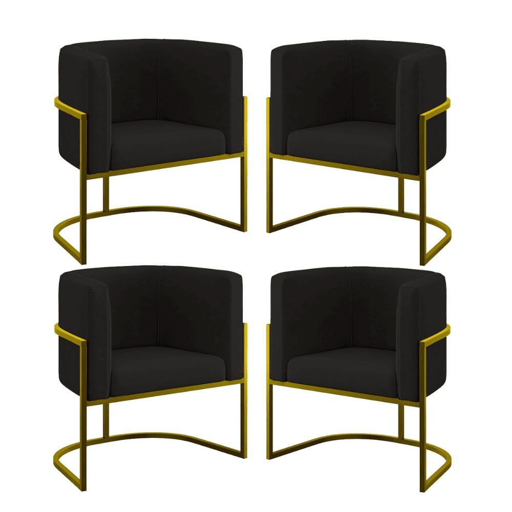 Kit 04 Poltronas Lua Sala Decorativa Base de Ferro Gold Cor:preto