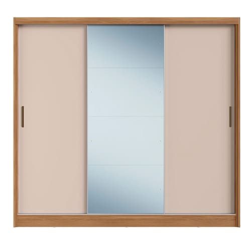 Guarda Roupa Dalila 3 Portas, 2 Gavetas e 4 Cabideiros Flex Amêndola com Espelho - Demóbile