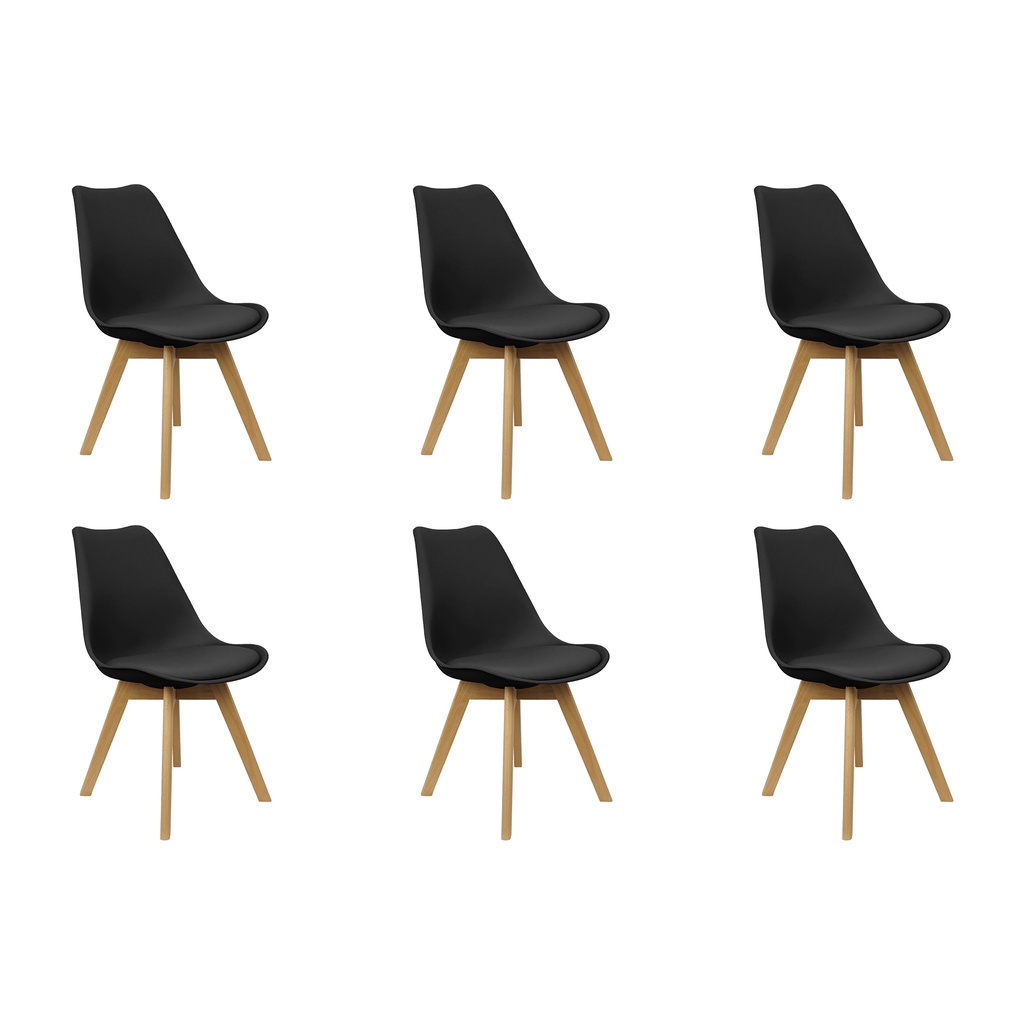 Kit 6 Cadeiras Charles Eames Eiffel Wood Base Madeira - Preta