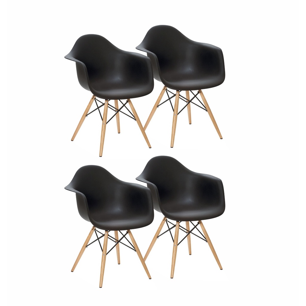 Kit 4 Cadeiras Charles Eames Eiffel Daw com Braços - Base de Madeira Clara - Branco
