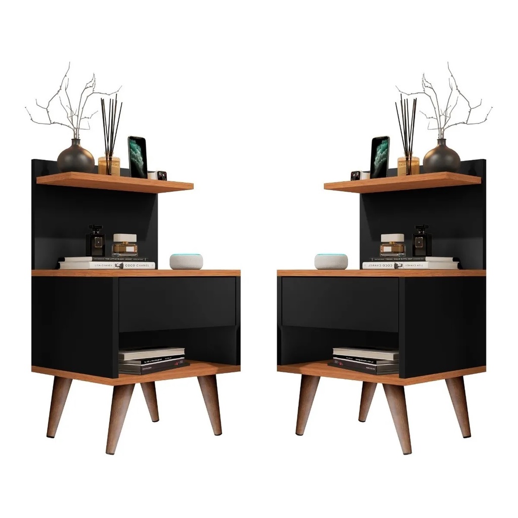 kit 2 /Mesa cabeceira Sleep Retrô Pé Palito Com 1 Gaveta Prateleira