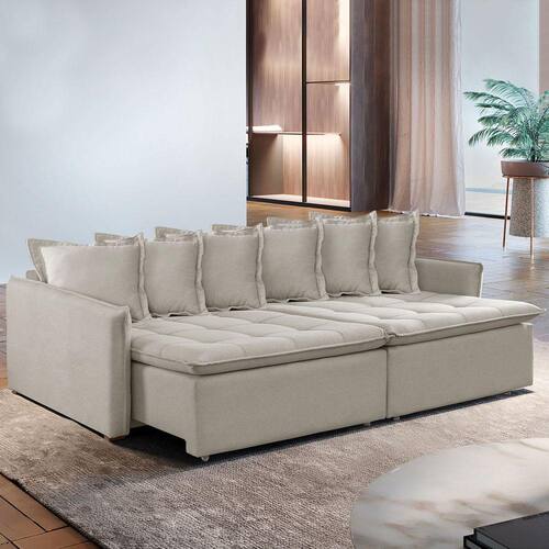 Sofá Cama 3 Lugares Aurora Retrátil Boucle Bege - Celflex