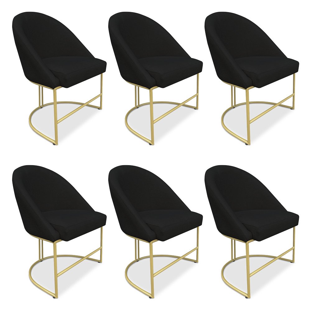 Kit 06 Cadeiras Poltrona de Jantar Bela Suede Base Metálica Industrial Dourado - Pallazio
