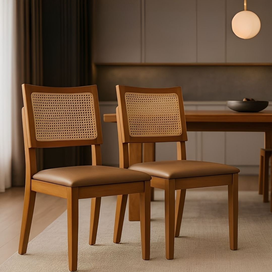 Kit 2 Cadeiras de Jantar Madeira Maciça Estofadas Couro com Tela Sextavada Premiere