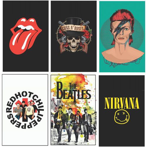 Kit 6 Placas Decorativas em MDF Bandas Rock