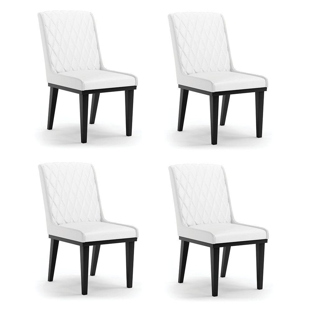 Cadeira Sala de Jantar Base Madeira Preto Kit 4 Sofia Sintético Branco D03 - D'rossi