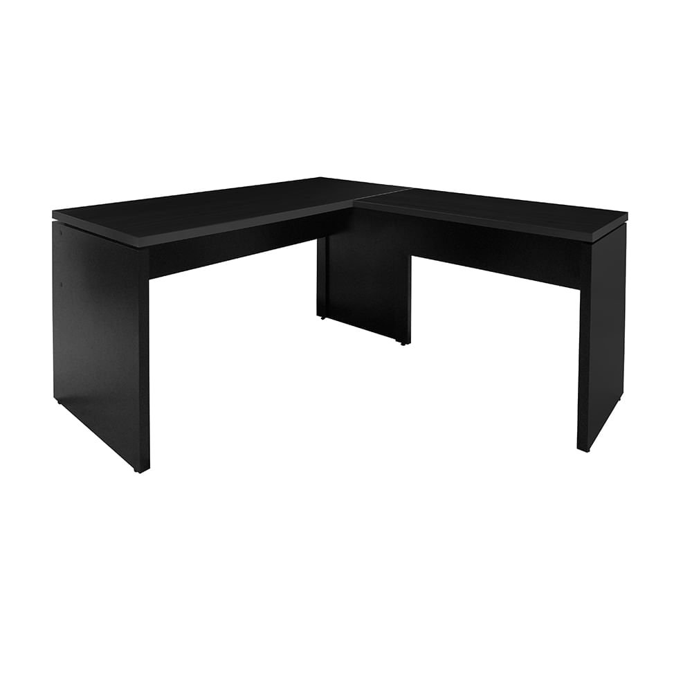 Mesa de Escritório em L Pé Painel PE25 em MDP 145 x 145 x 60 cm Cinza com Base Preta