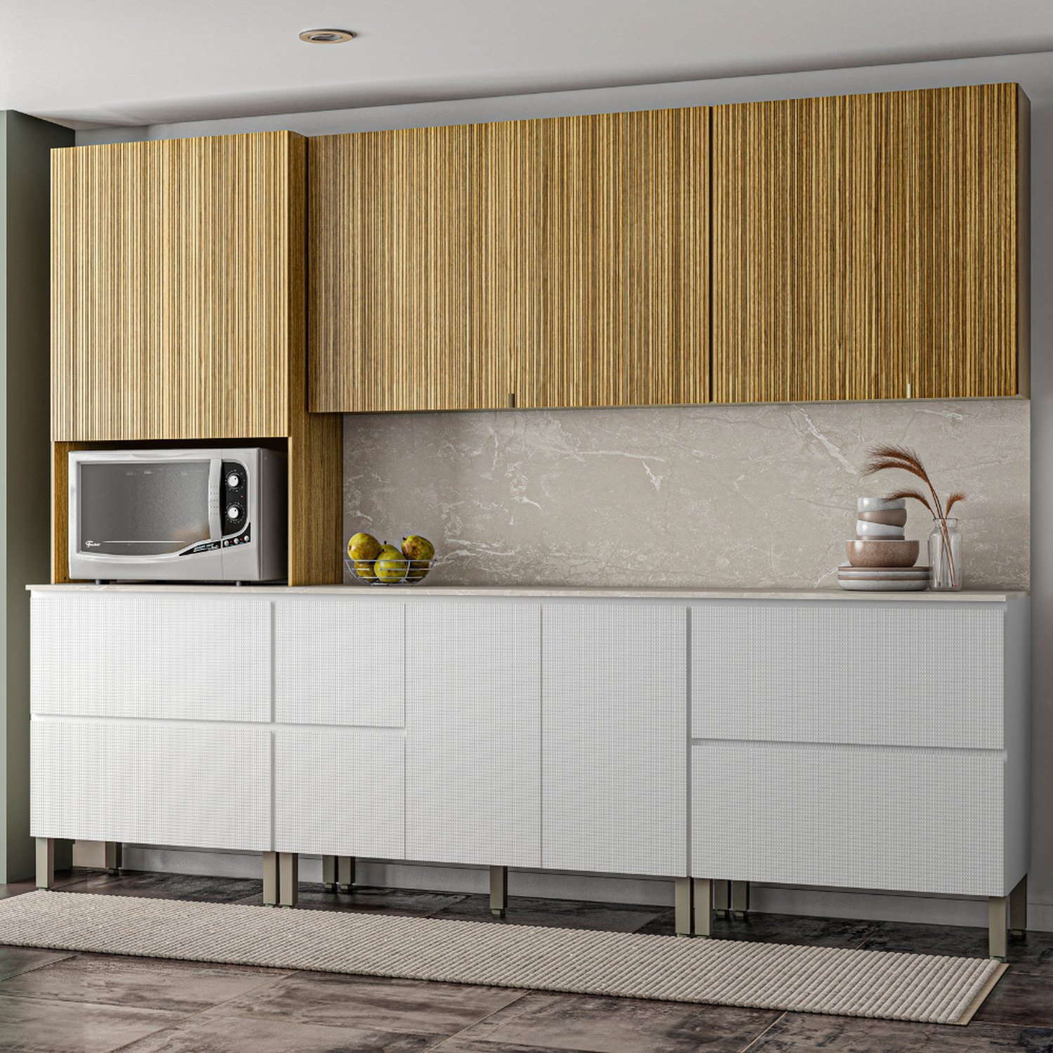 Cozinha Modulada Completa 7 peças 9 Portas 4 Gavetas Balcão com Tampo e Painel Art