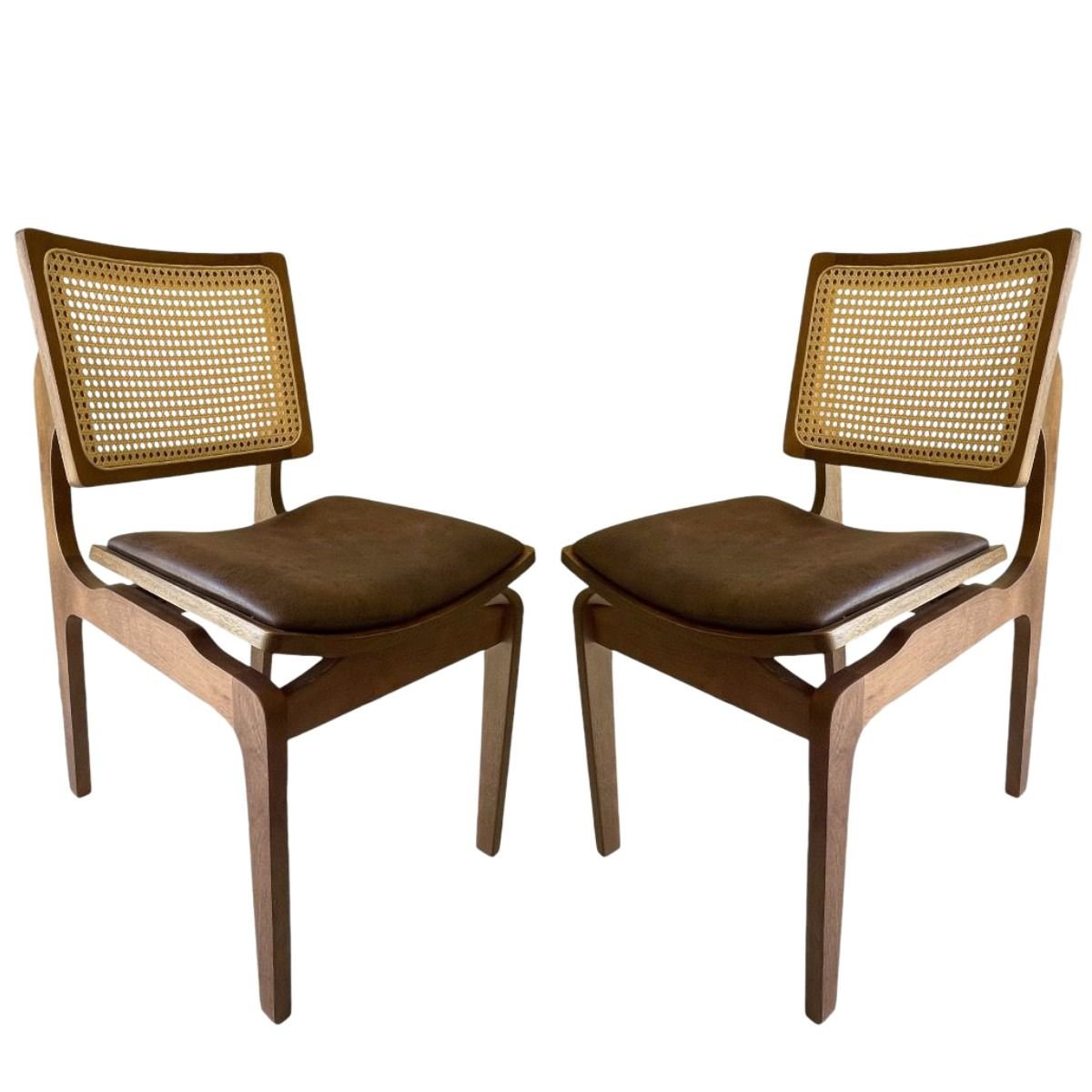 Conjunto 2 Cadeiras Madeira Maciça Encosto em Tela e Assento Estofado Serena