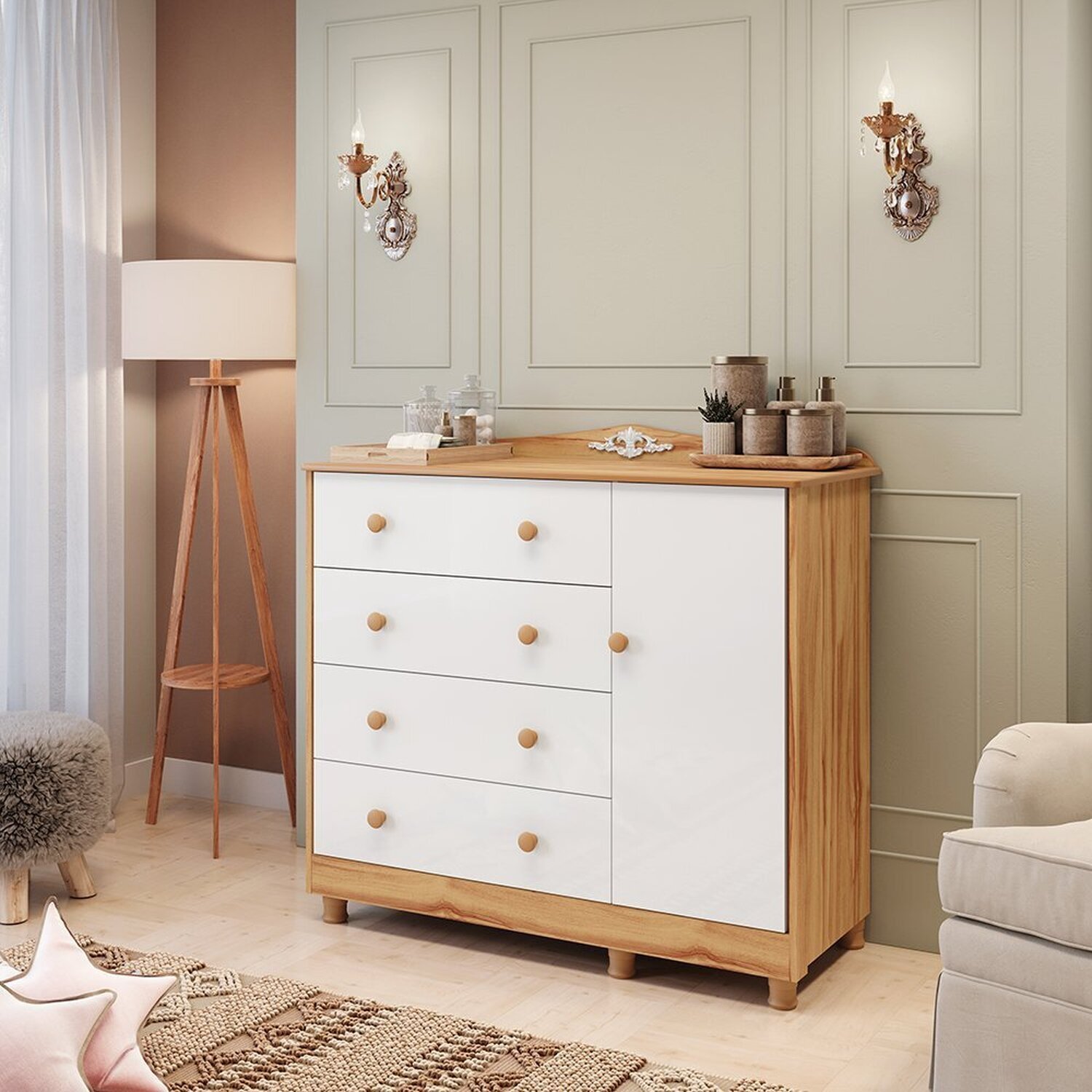 Cômoda de Bebê Infantil 1 Porta com Janela 4 Gavetas 100% MDF Uli