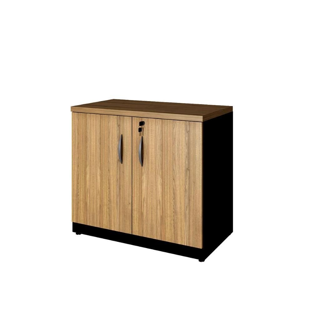 Armário Escritório Baixo 80cm X 45cm 2 Portas e Chave Mp F5 Cor:macadâmia com Preto