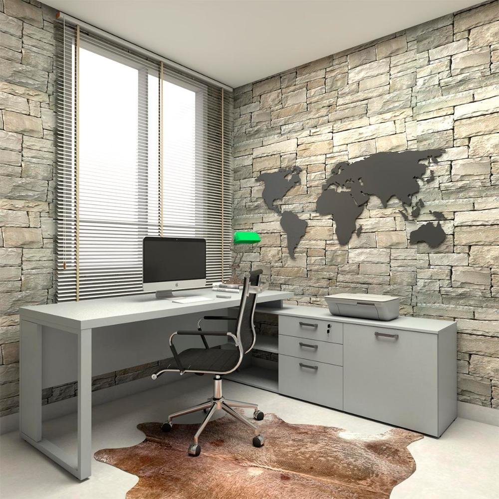 Mesa de Escritório Diretor em L Industrial 190cm Pés Metal Cor:cinza Sagrado com Preto