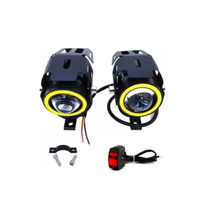 Par Mini Farol Milha Moto Angel Eye U7 Led Auxiliar 10W 30w Neblina Forte Potente