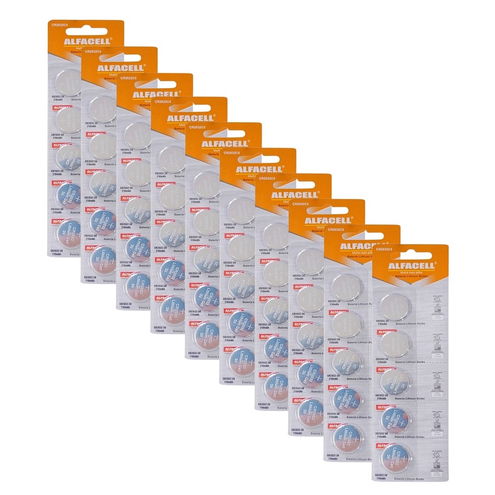 Bateria CR2032 Alfacell Pilha Moeda Botão Caixa 50 Unidades 3V Alcalina