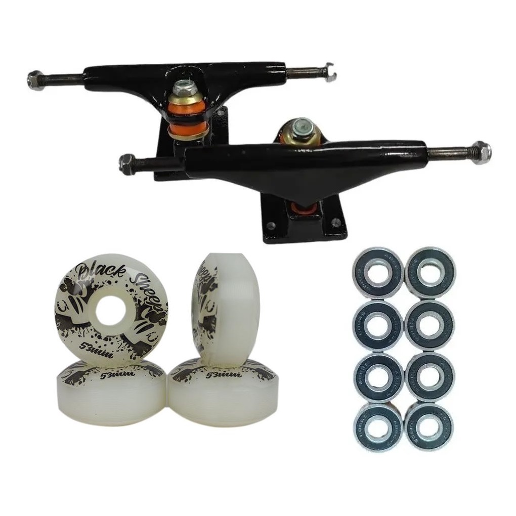 Kit Truck 139mm + Roda 53mm Black Sheep + Rolamento Abec 7 Skate Skateboard Street Melhor preço com Nota Fiscal