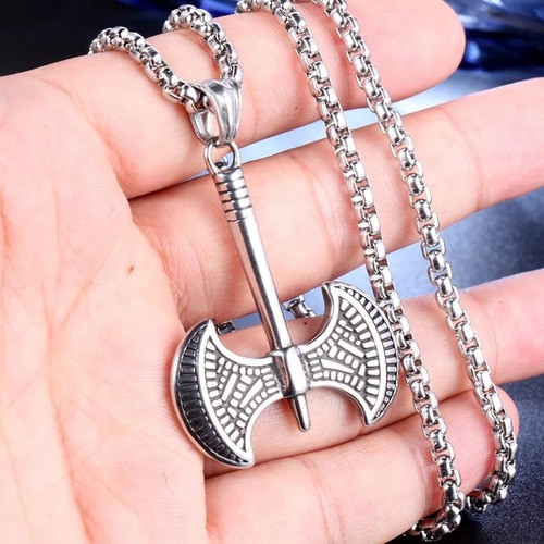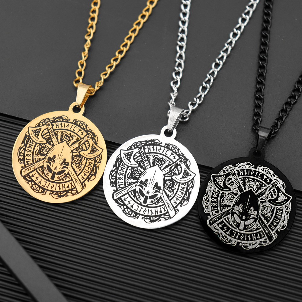 Z H Jóias Vintage Nordic Viking Amuleto De Machado Duplo Hip Hop Pingente Moda Masculina E Feminina Colar De Aço Inoxidável Punk Party Rock Titanium Steel Jewelry Acessórios