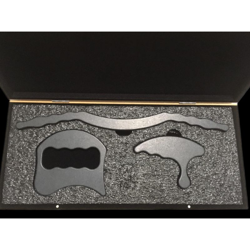 kit IASTM Liberação Miofascial com CASE Raspadores Estética Soco Soqueira Guidão Gatilho Polegar Gancho Gota Faquinha Coração