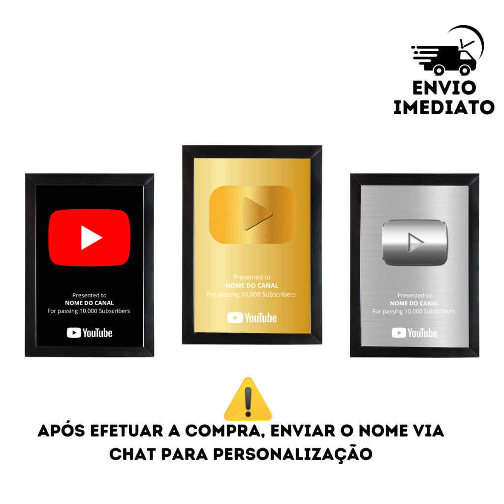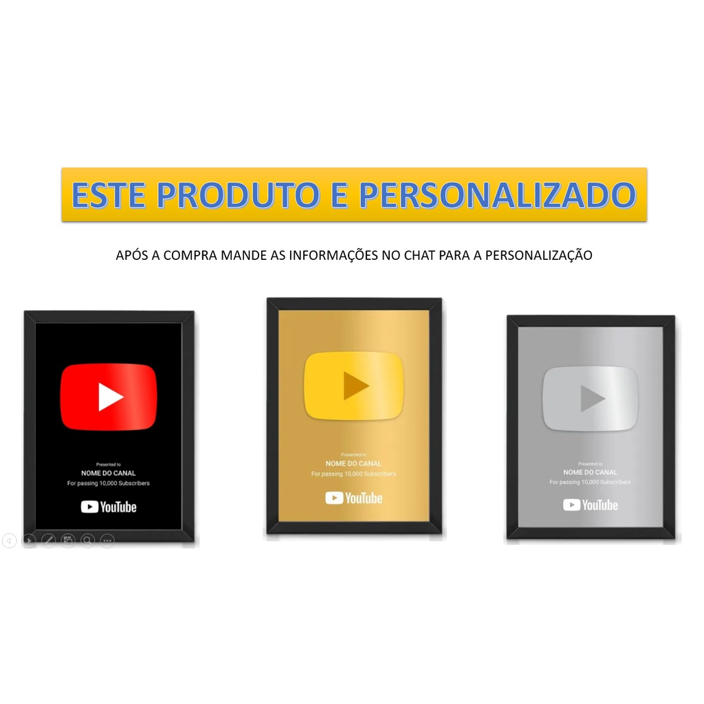 Quadro Placa Youtube Personalizado 1000 5000 10000 Inscritos Envio Imediato