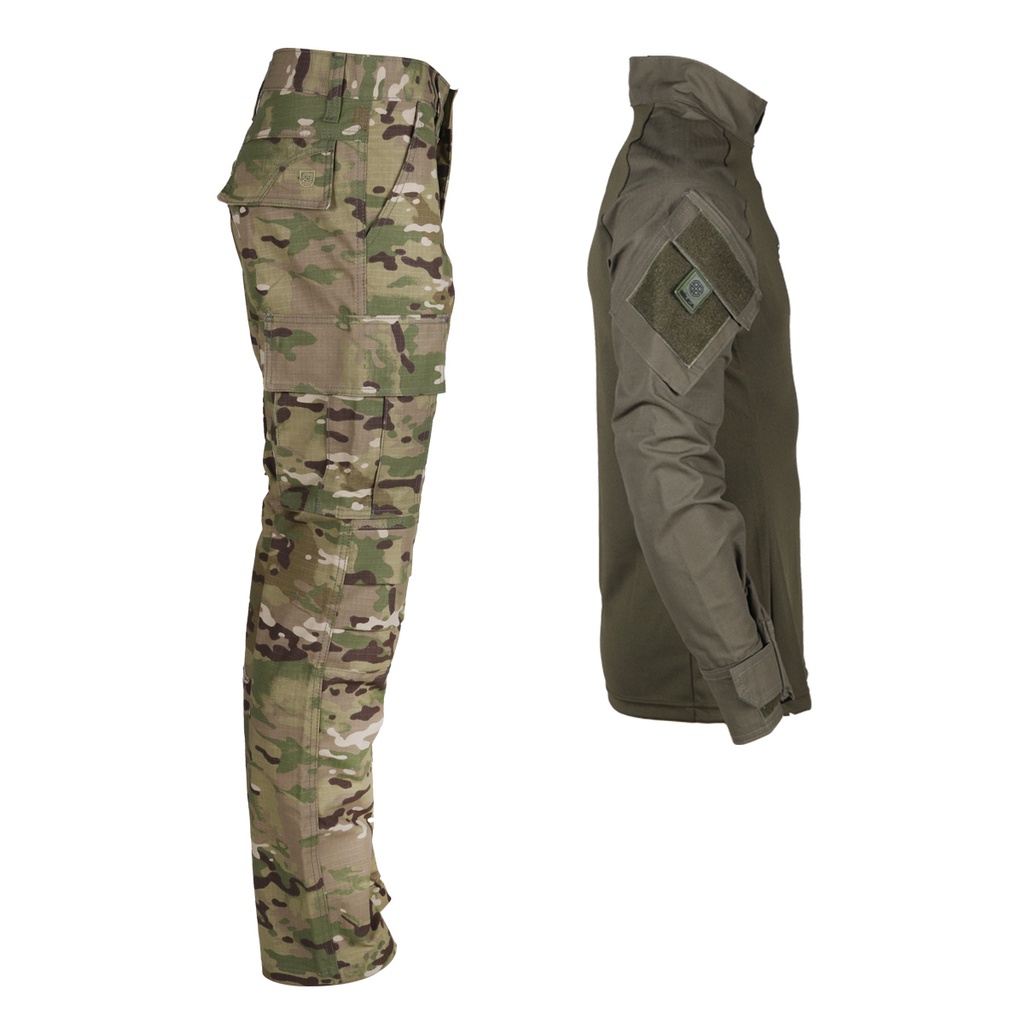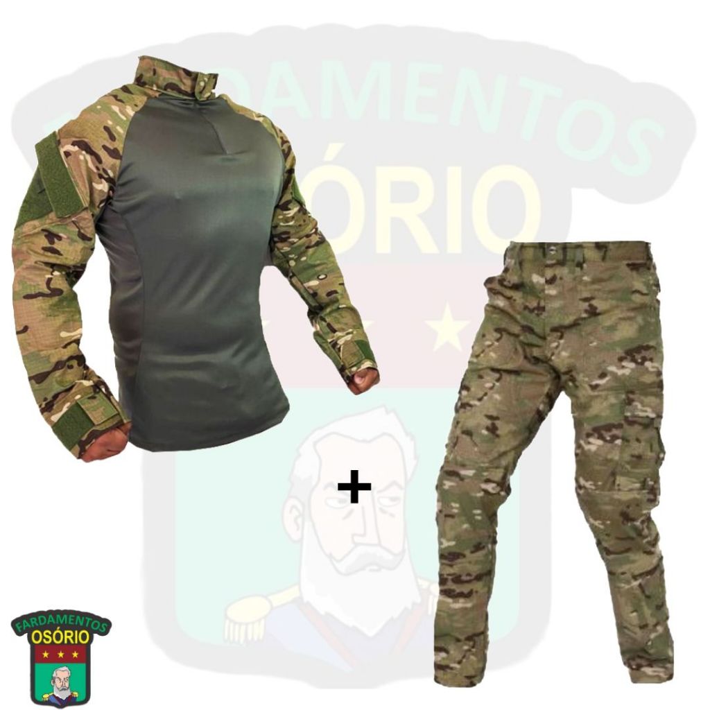Farda Conjunto Fardamento (Calça Combat + Combat Shirt) - Camuflado Multicam e Verde
