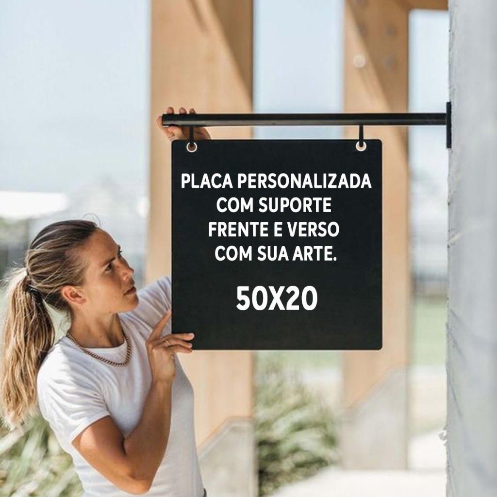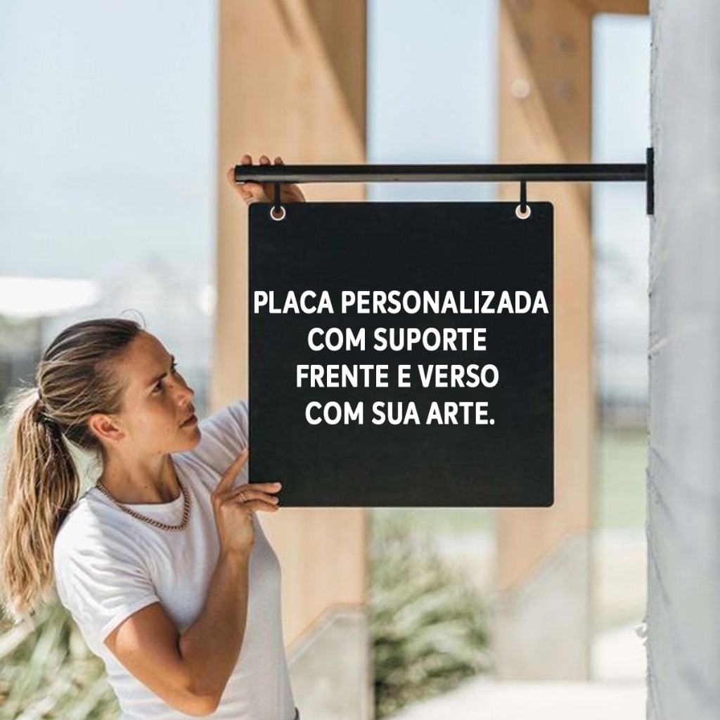 Placa Para Fachada Loja Personalizada Sua Marca C/ Suporte Ferro PS Frente Verso Dupla Face Comércio Salão Beleza Empresa