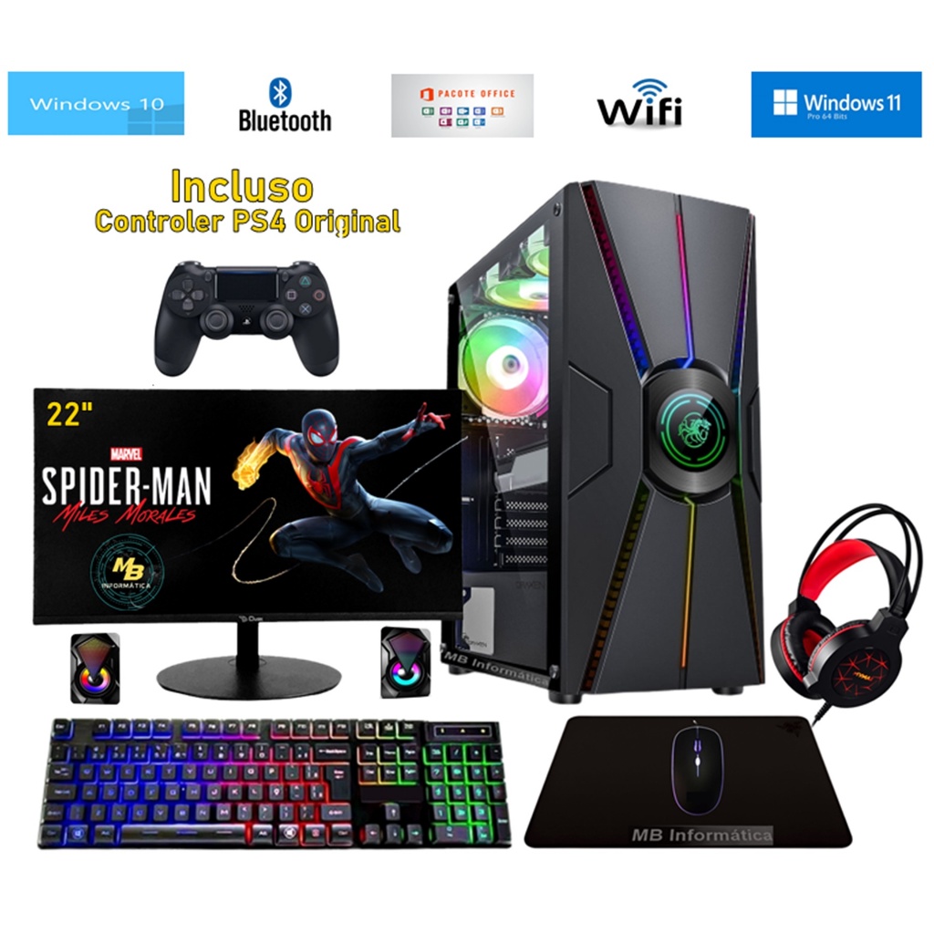 Cpu Gamer Ryzen 7 c/ 16 Núcleos 3.70 Ghz Turbo + Placa de vídeo RX 580 8GB + Joystick PS4 Original + SSD Nvme garantia e nota fiscal e suporte total pós venda