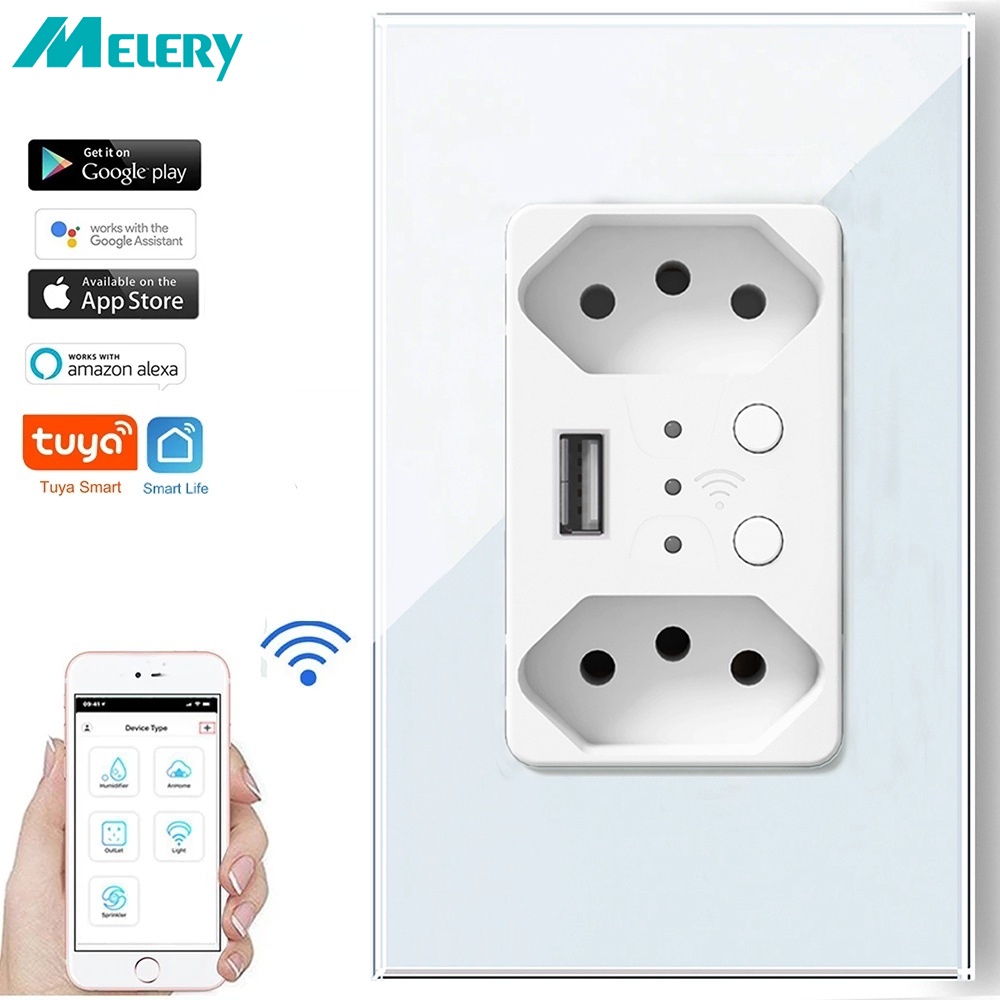 Melery WiFi Smart Brasil Wall Socket USB Plug Elétrico Tomada Suíça Saídas PC Painel De Vidro Remoto Por Tuya Alexa Google Home