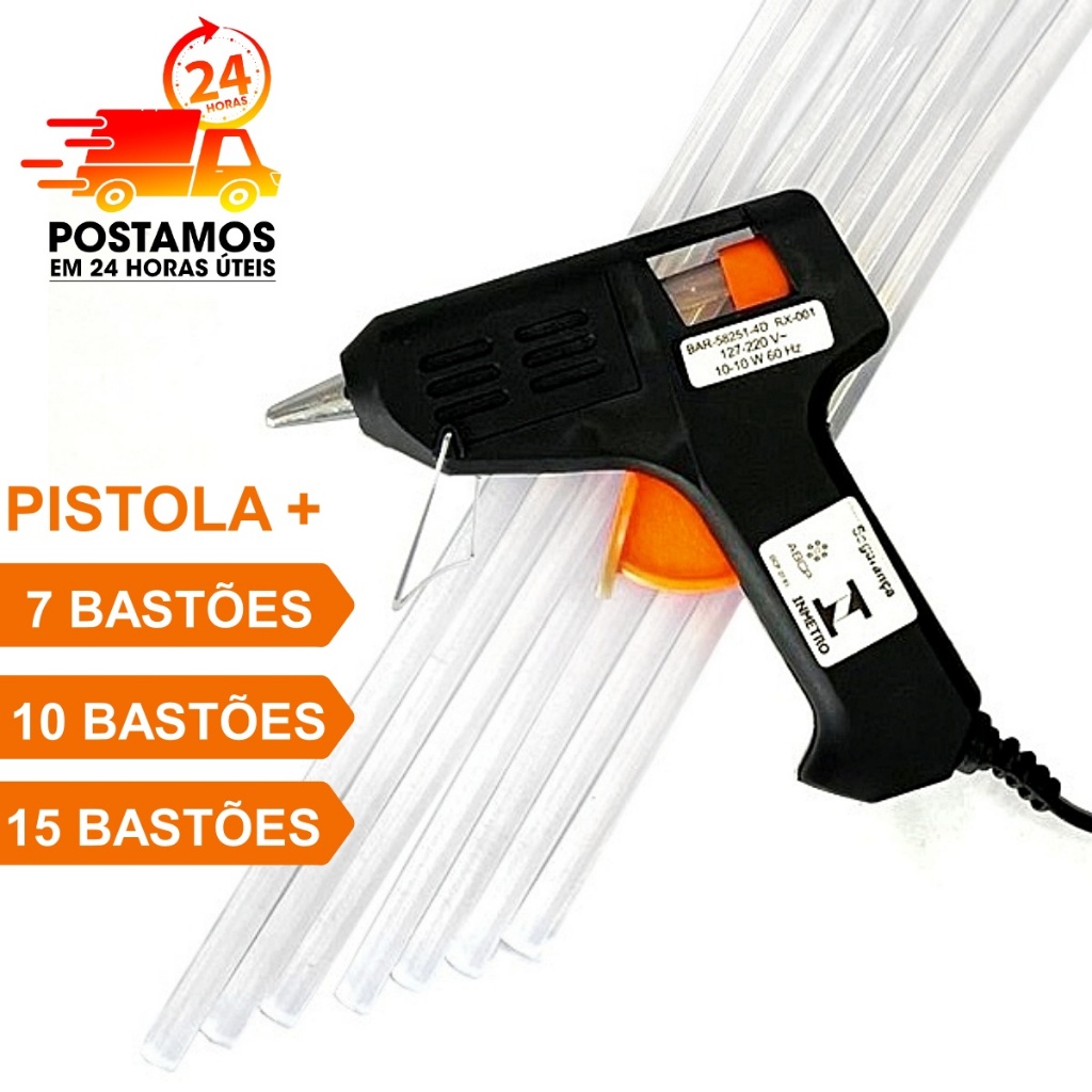 Kit Aplicador Pistola 10w + bastões de cola quente bico fino 7mm - 7 10 ou 15 bastões para artesanato reparos EVA Escola Colar