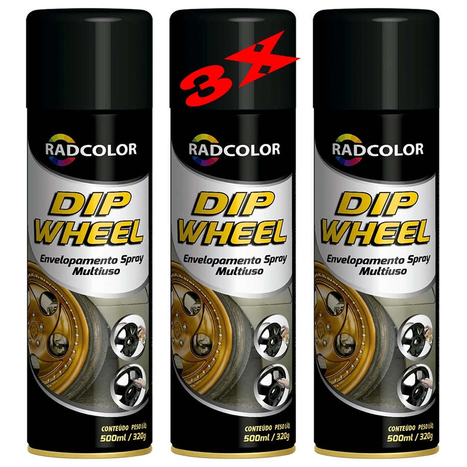Kit 3 LATAS Spray De Envelopamento Líquido Preto Fosco Dip Wheel 500ml RAD2300