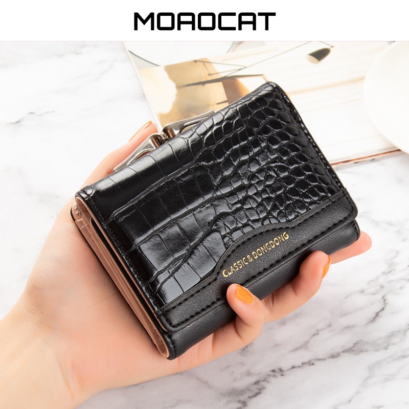 【 MOAOCAT 】 Women's Short Wallet Retro Carteira Tri-Dobradura Simples Multi-Cartão Porta-Moedas Com Padrão De Crocodilo