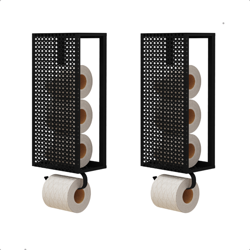 Kit 2 Porta Papel Higiênico Suporte Papel Higiênico p/ Banheiro 4 Rolos Estilo Industrial Preto
