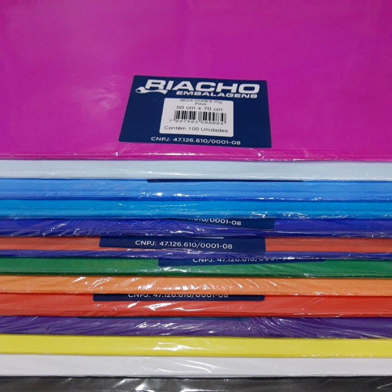 papel de seda 50x70 lisa pct c/ 100 folhas riacho
