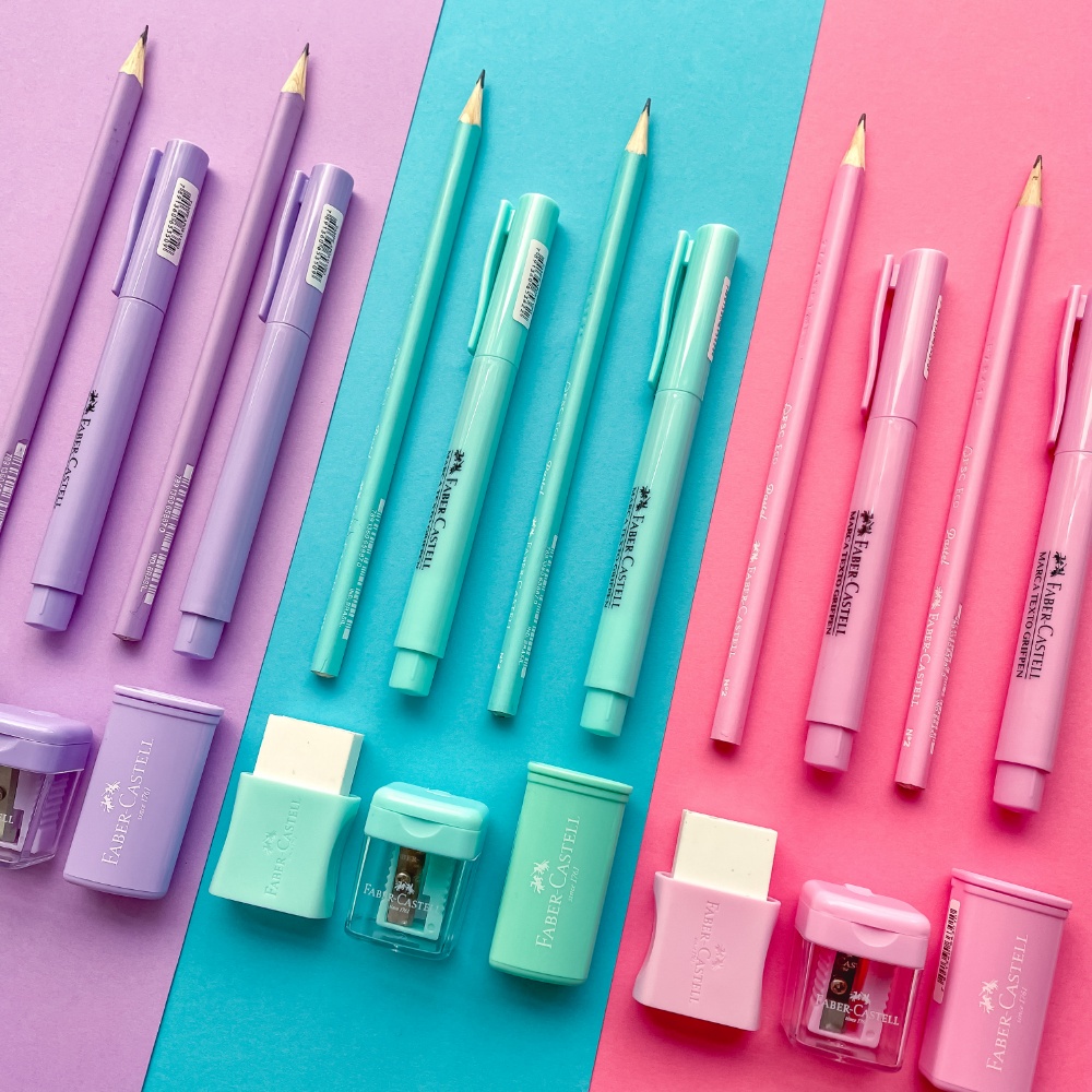 Kit Escolar Tons Pastel FABER-CASTELL (Marca Texto + Lápis + Borracha + Apontador)