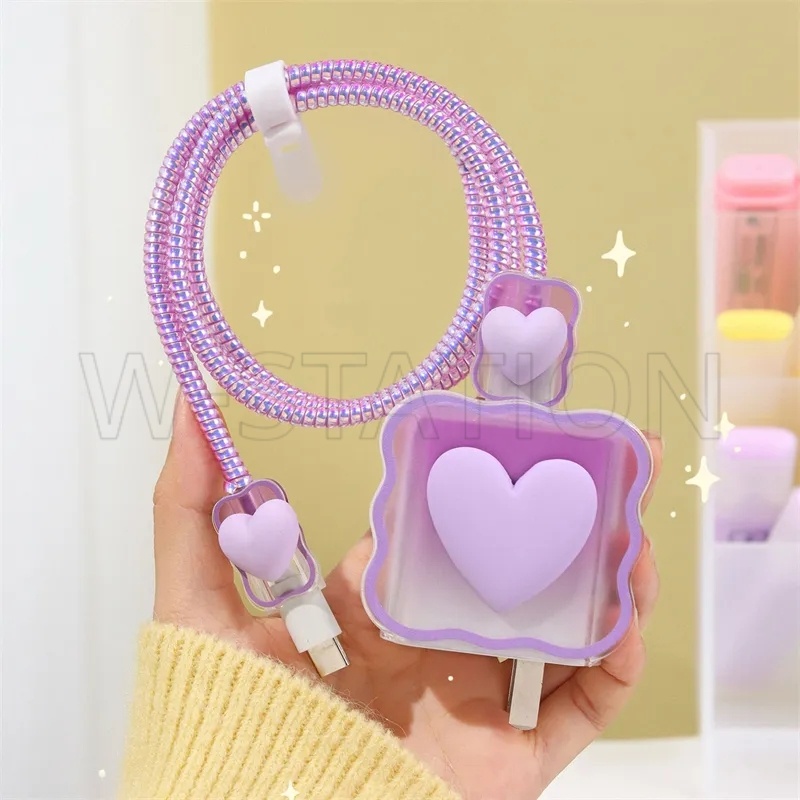 protetor de carregador iphone 18W/20W Capa Para Carregador Plugue USB Cabo Mola Linha Protetora De Dados Organize Fio De Enrolamento Gravata Amor Flores Coração Kaws Padrão Soft TPU Tipo-C