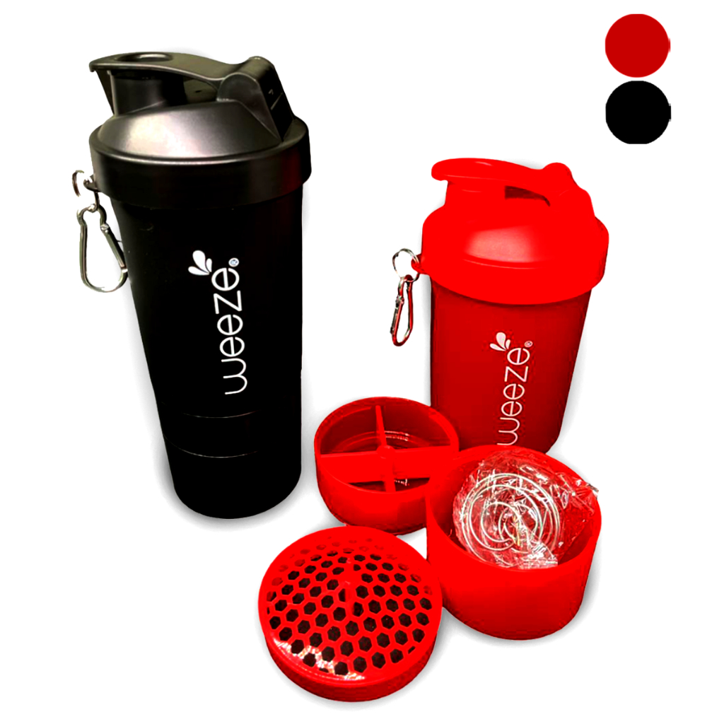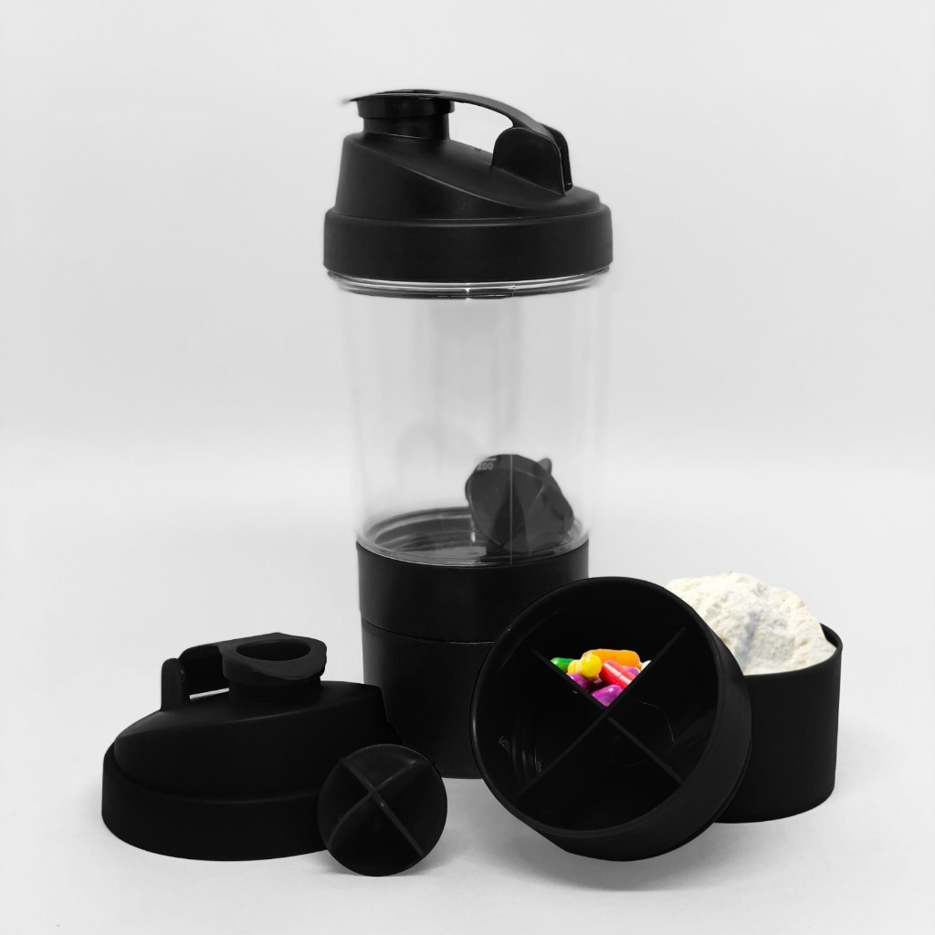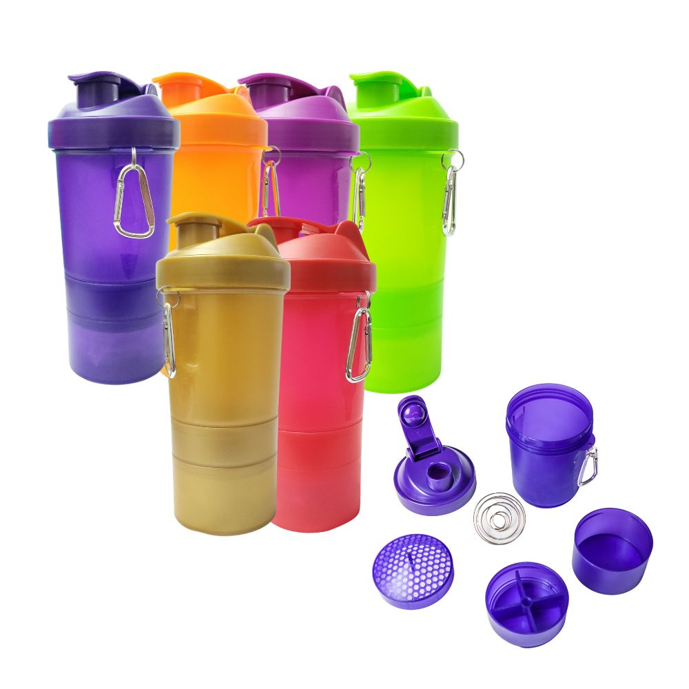 Coqueteleira Shakeira Academia com Divisória Dupla Para Suplementos e Mola Bater Shake Garrafa Squeeze 500ML